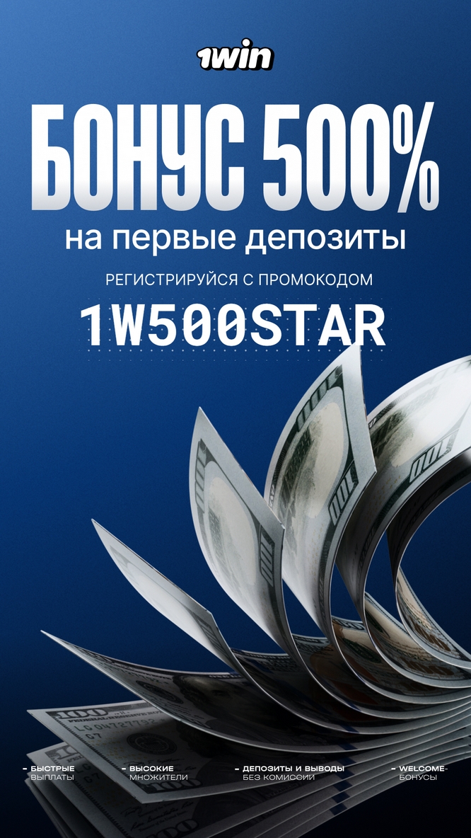 - На первый депозит действует бонус до 200%. - На второй депозит предоставляется бонус 150%. - На третий депозит предоставляется бонус 100%. - На четвертый депозит предоставляется бонус 50%. Промокод 1win 2026: 1W500STAR - 1Win Приветственный Бонус Промокод 1Вин. При первом депозите вы получите бонус в размере 500% до 200 000 рублей на свой счет не единственное предложение компании. Промо доступен только новичкам. Ваучер могут использовать люди, которые прошли регистрацию. Ваучер можно искать на следующих ресурсах: - официальный сайт казино; - социальные сети - аккаунты оператора; - мессенджеры - каналы бренда; - наш информационный ресурс. Клиент, который хочет получить деньги или фриспины должен убедиться в актуальности. Дополнительные средства принесет только действующий 1Win промокод на фрибет - ищите его на официальных ресурсах. Игроки, которые используют неактуальные данные, останутся ни с чем. Оператор при этом не будет штрафовать, другим способом наказывать посетителя сайта. Для вывода средств, полученных от бонусной программы, требуется: - Заключать пари только на одиночные события. - Коэффициент пари не должен быть ниже 3.0. - Доступны любые виды спорта и киберспорт. Если ставка завершится положительным исходом, то 5% суммы изымаются с бонусного счета и переводятся на основной лицевой счет игрока. 1Win Промокод при регистрации: 1W500STAR - уникальный код, активирующий бонус 500% до 75,000 рублей. Это эксклюзивное предложение доступно исключительно новым игрокам, предоставляя им возможность получить увеличенный приветственный бонус от 1Win. 1win предлагает различные виды промокодов, каждый из которых имеет свои особенности: - Промокоды для новичков или при регистрации: Эти бонусы предназначены для тех, кто только начинает играть на платформе. - Для всех игроков: Эти поощрения доступны для всех клиентов, независимо от их опыта и статуса. - Для активных игроков: Некоторые промокоды активируют бонусы для активных игроков, например, увеличенный кешбэк или дополнительные бонусы за определенные суммы ставок. - Промокоды на фрибеты: Эти промокоды предоставляют возможность сделать бесплатные ставки. - Промокоды на спины: Эти промокоды дают возможность бесплатно вращать определенные слоты. - Промокоды на дополнительные средства при пополнении баланса: Эти промокоды предоставляют дополнительные средства при пополнении баланса. - Промокоды для участия в специальных акциях: Эти промокоды предоставляют возможность участвовать в специальных акциях. Используйте промокод 1Win: 1W500STAR при регистрации, чтобы получить максимальный бонус в размере 500% до 75 000 рублей. Введите промокод в соответствующее поле при заполнении формы регистрации, чтобы получить до пяти дополнительных бонусов на ваш депозит. Бонус 1Win будет зачислен на два бонусных счета одновременно - на счета “Ставки” и “Казино”. Как правильно использовать промокод в 1win 1win промокод без депозита: 1W500STAR вводится при регистрации и предоставляет бонус до 500% на первый депозит. Вот как его использовать: - Перейдите на рабочее зеркало сайта или откройте официальное мобильное приложение. - Нажмите на зелёную кнопку “Регистрация” в правой части верхнего меню. - Выберите удобный вариант регистрации: в 1 клик, через социальные сети или почтовый ящик. - Укажите валюту лицевого счёта, номер телефона, почтовый ящик или другие запраши